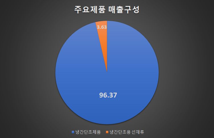 태양금속의 주요제품 매출구성은 냉간단조제품이 주력제품으로 전체매출비중의 96.37%를 차지하고 있습니다. 그 외 3.63%는 냉간단조용 선재류 및 취부와샤가 차지하고 있습니다.