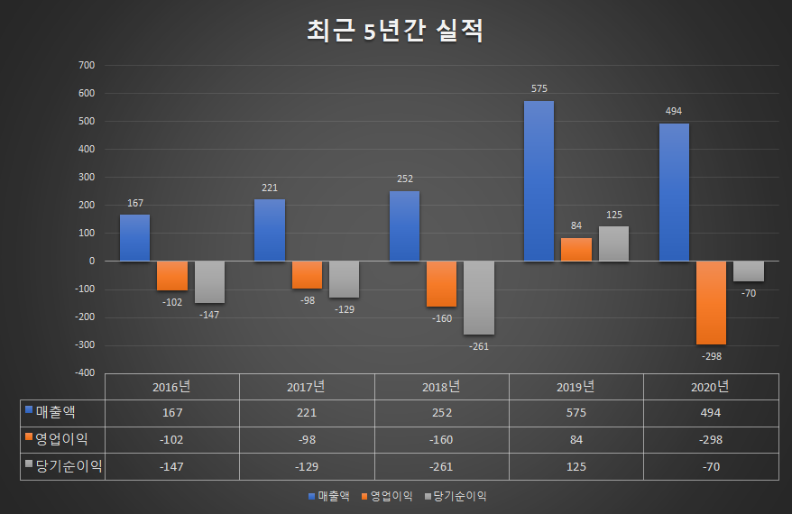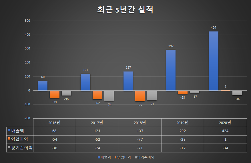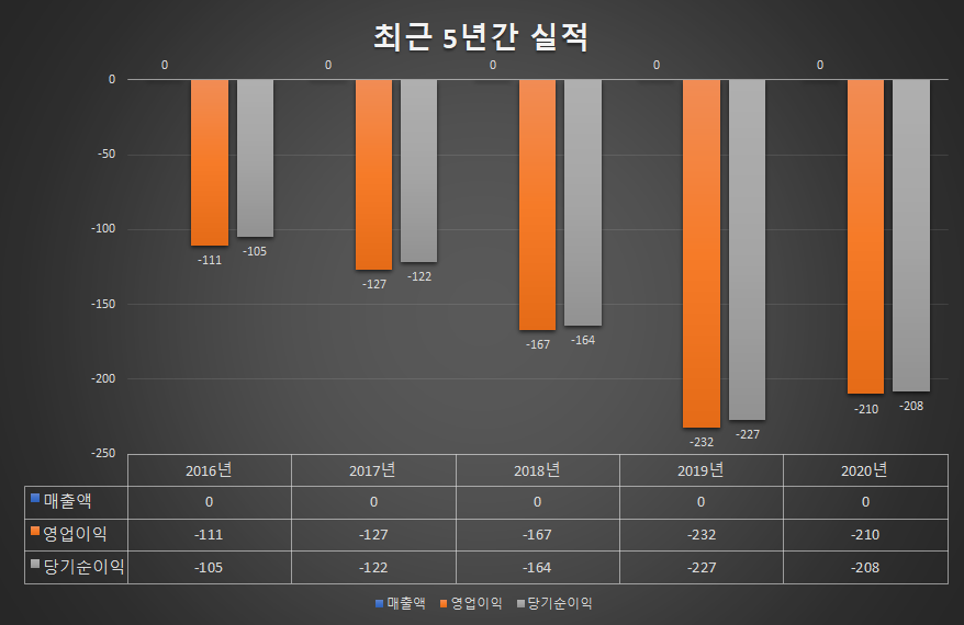 큐리언트의 최근 5년간 매출액은 없습니다.