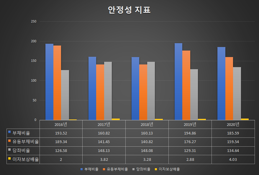 당좌비율과 이자보상배율은 안정적인 비율로 보입니다.