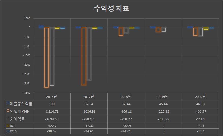 아이진의 수익성 지표는 현재 사업상 투자가 많은 상황이라 수익성 지표는 큰 의미가 없다고 생각이 됩니다.