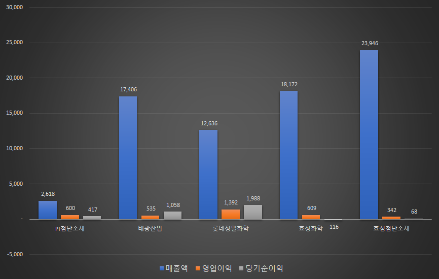 당기순이익 순위 : 롯데정밀화학 1,988억원