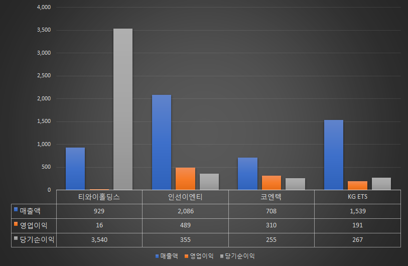 당기순이익 순위 : 티와이홀딩스 3,540억원