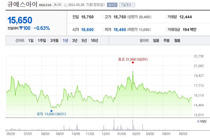 큐에스아이는 2000년에 설립되어 2006년 11월 24일에 코스닥시장에 주식을 상장하였으며 주요제품 매출구성은 Sensor기종 20.67%, LBP기종 18.54%, Medica기종 16.67%, PT기종 15.39%, 기타 28.73%를 차지하고 있습니다.