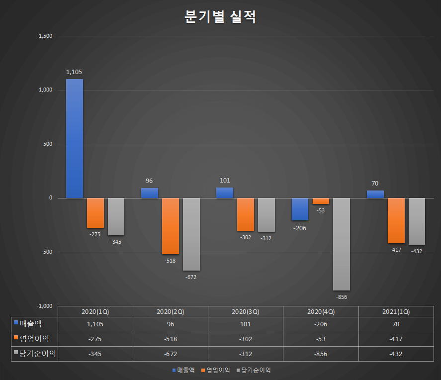 - 매출액 : 70억원 (전년동기 1,105억원)