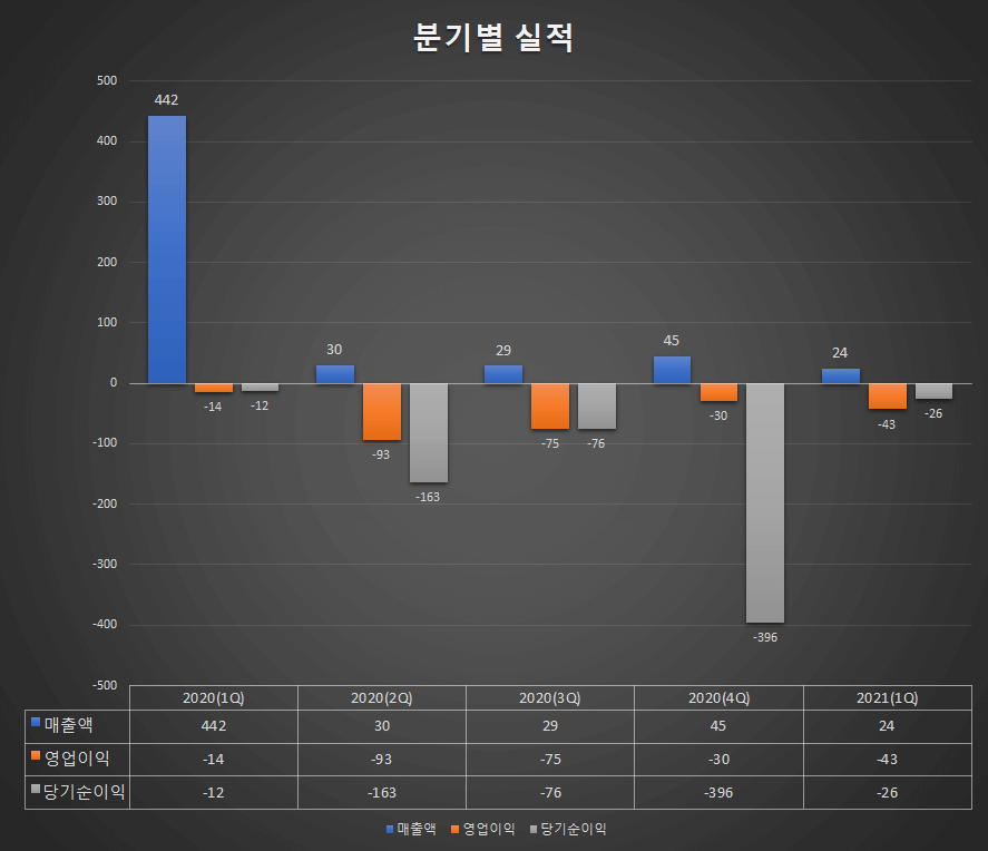 - 매출액 : 24억원 (전년동기 442억원)
