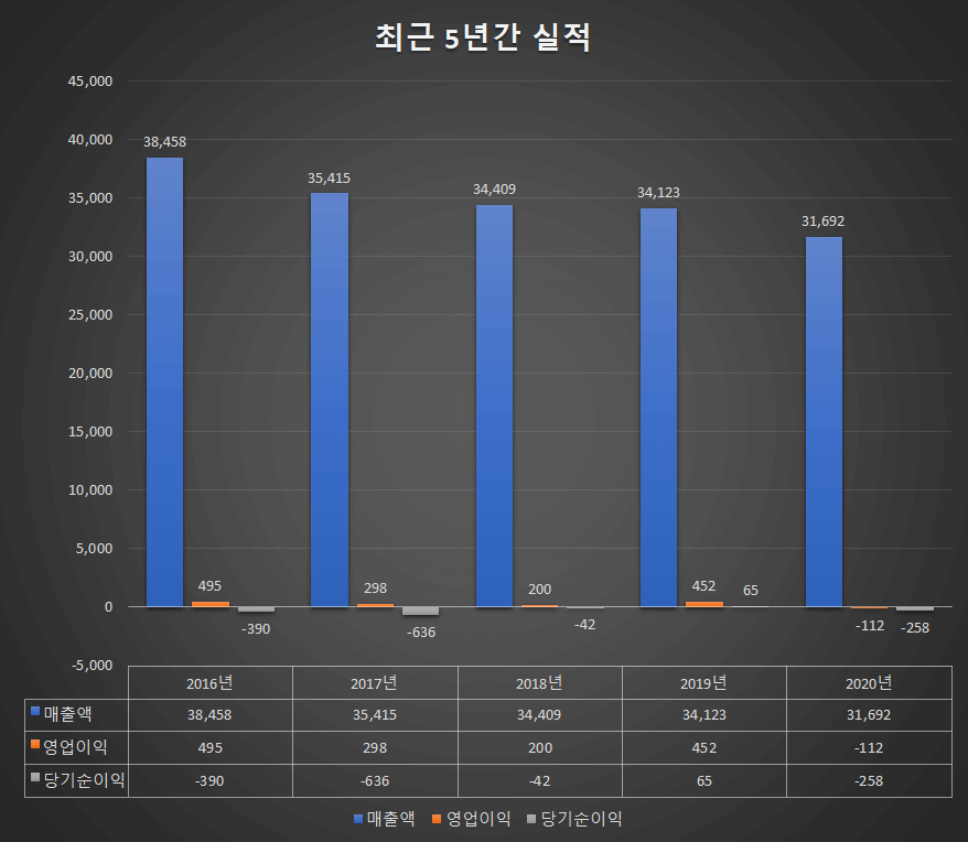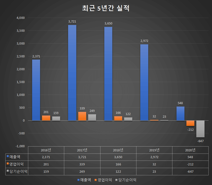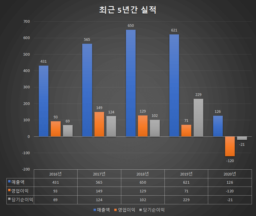 - 매출액 : 5억원 (전년동기 167억원)