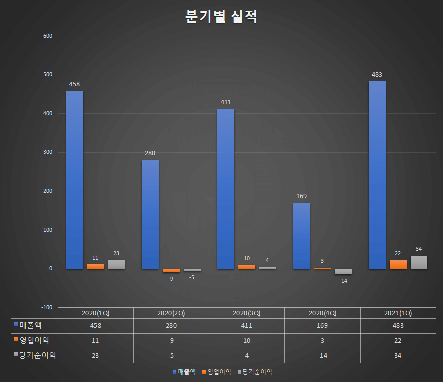 - 매출액 : 483억원 (전년동기 458억원)