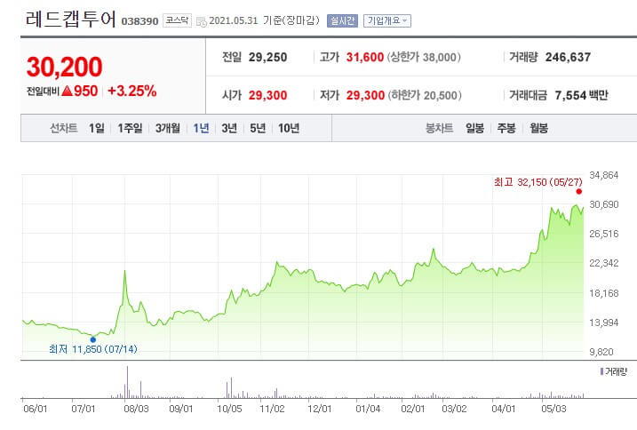 레드캡투어 주가