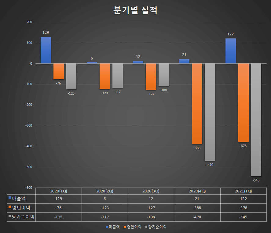 - 당기순이익 : -545억원 (전년동기 -125억원)