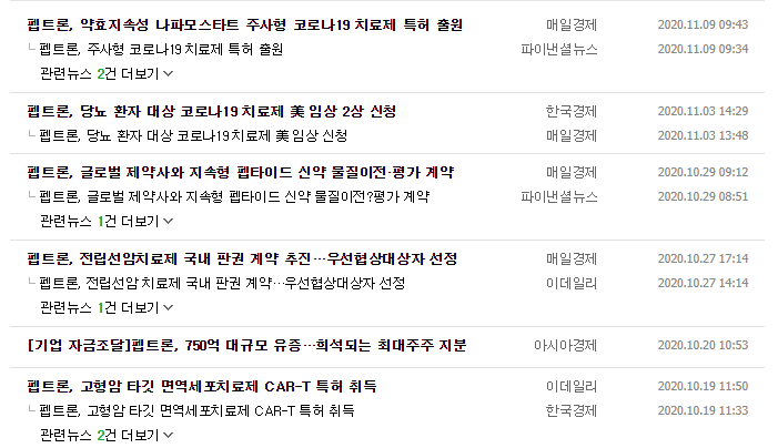 당사는 펩타이드 및 약효지속성 의약품 연구개발사업을 주요 영업으로 수행하고 있으며, 미래 성장성 확보를 위해 당사의 SmartDepot 기술을 적용하여 개발할 수 있는 신규 파이프라인 후보를 지속적으로 탐색하고 있습니다.