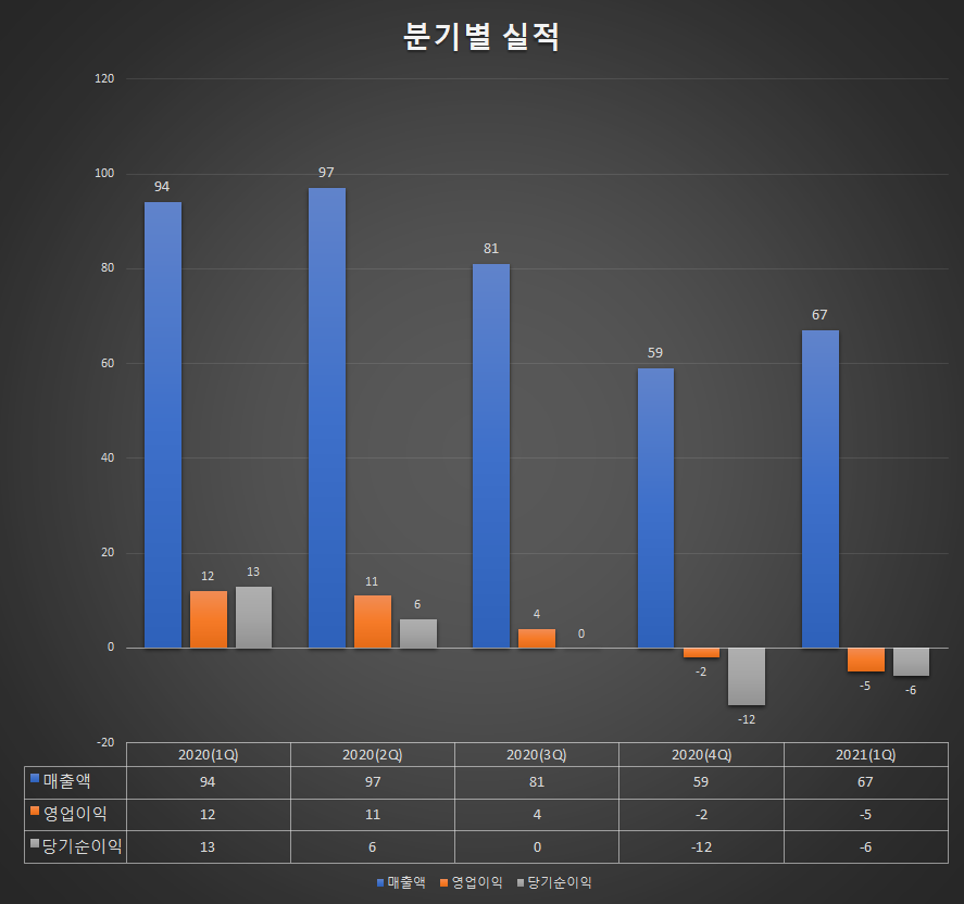 - 당기순이익 : -6억원 (전년동기 13억원)