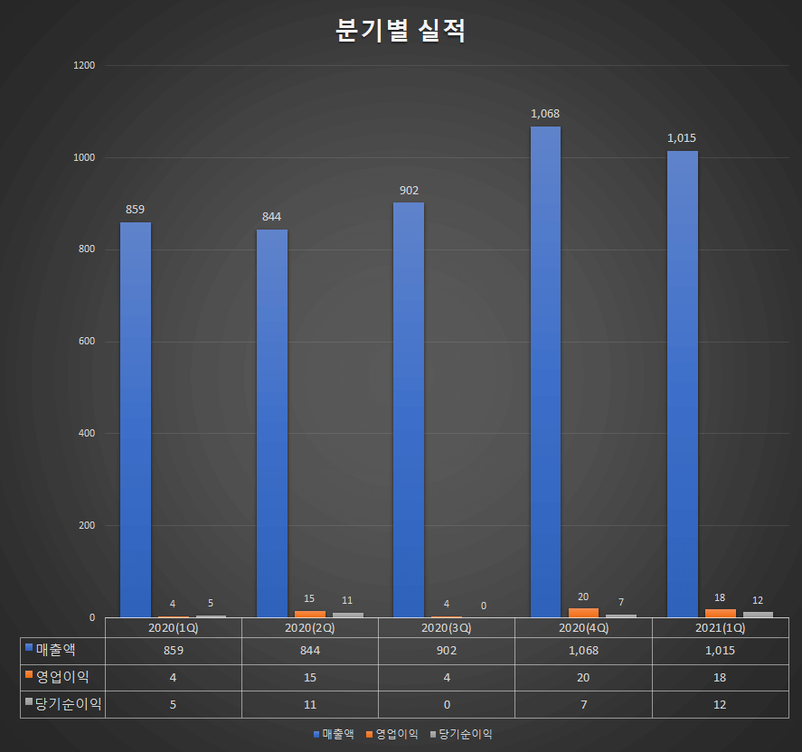 - 매출액 : 1,015억원 (전년동기 859억원)