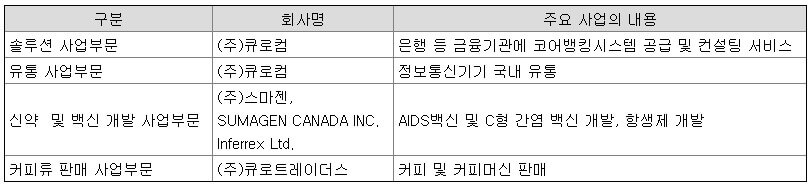 지배회사인 (주)큐로컴이 Inferrex사 설립 초기 단계에 투자하여 현재 51.44%의 지분을 보유하고 있습니다.