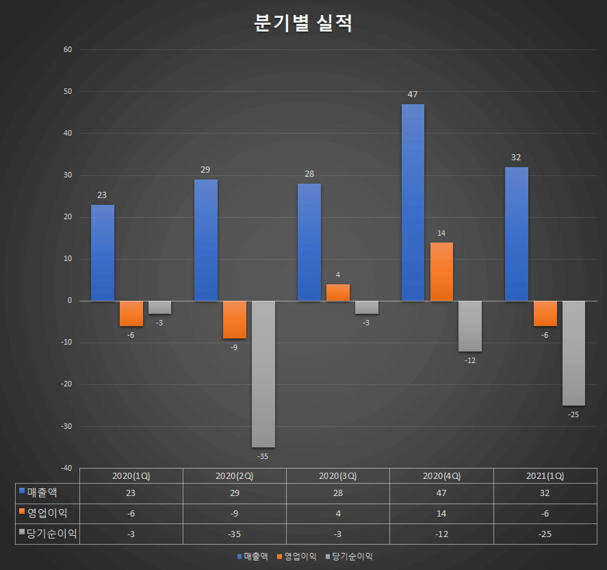- 당기순이익 : -25억원 (전년동기 -3억원)