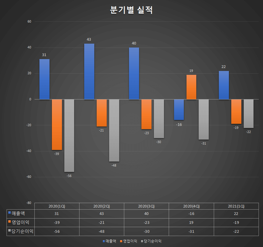 - 당기순이익 : -22억원 (전년동기 -56억원)
