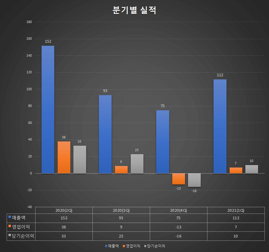 - 매출액 : 112억원 (직전분기 75억원)