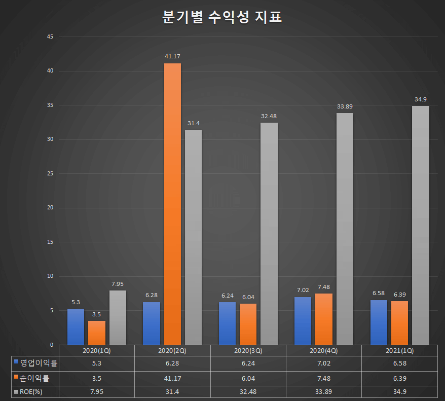 - ROE : 34.9% (전년동기 7.95%)