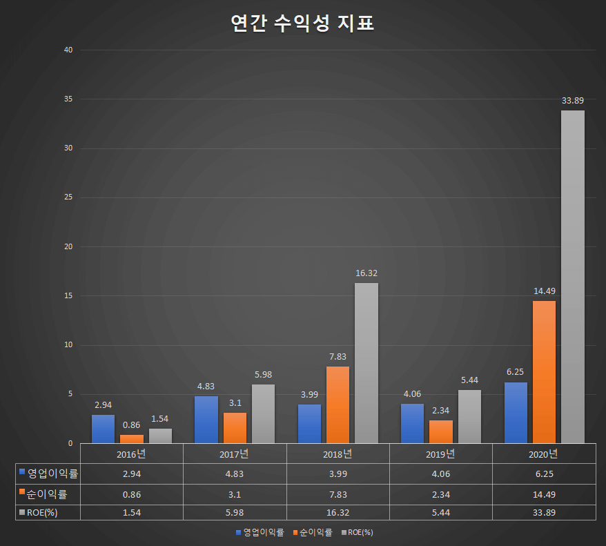 - ROE : 34.9% (전년동기 7.95%)