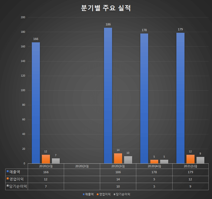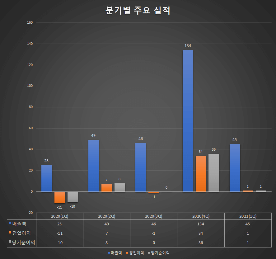 - 영업이익 : 1억원 (전년동기 -11억원)