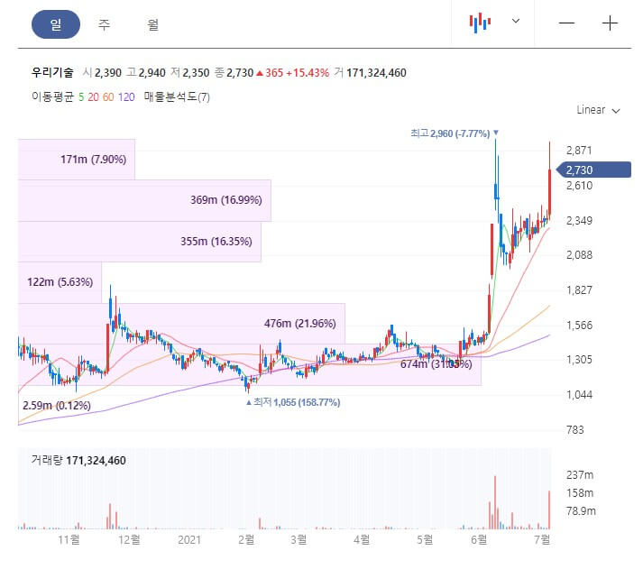 우리기술은 2000년 6월에 코스닥시장에 주식을 상장하였으며 시스템사업부문, SOC사업부문, 바이오사업부문, 신규사업부문, 임대사업부문으로 나누어 사업을 영위하고 있습니다.