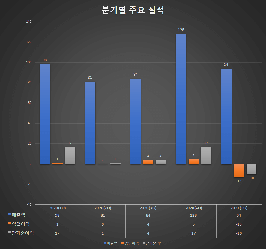 - 당기순이익 : -10억원 (전년동기 17억원)
