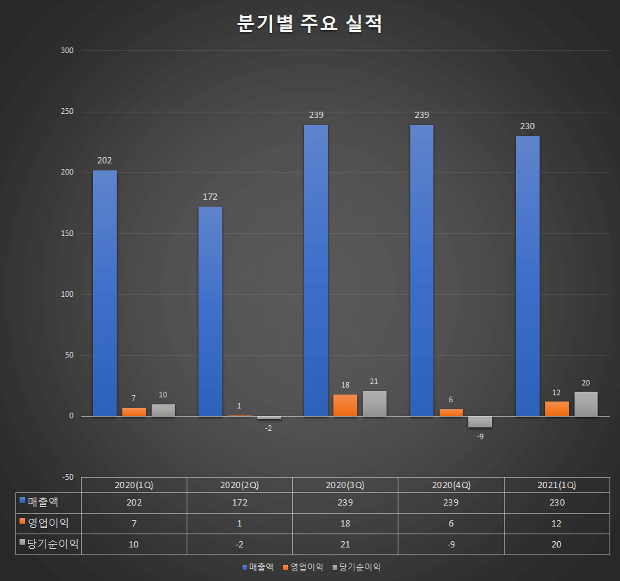 - 당기순이익 : 20억원 (전년동기 10억원)