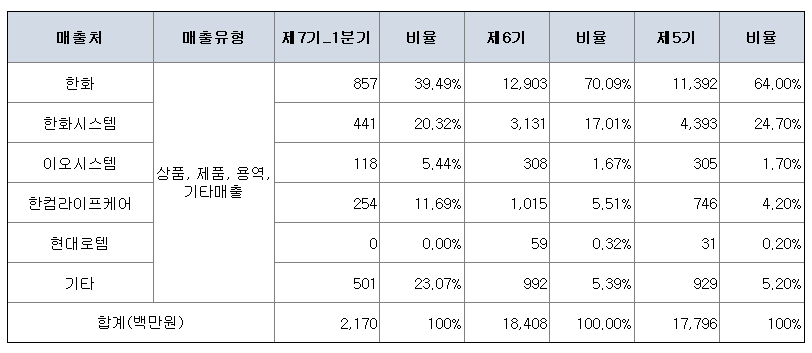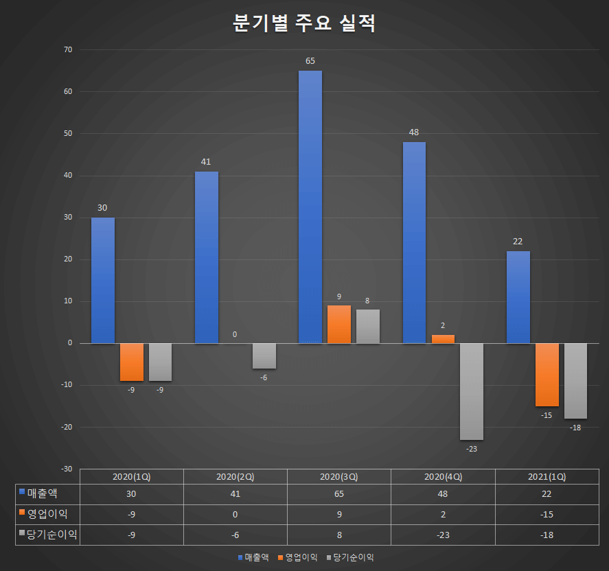 - 매출액 : 22억원 (전년동기 30억원)