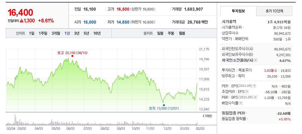 웹툰 관련주 TOP8 - 키다리스튜디오, 대원미디어, 엔비티, 미스터블루 (1) | 2022.02.06 |