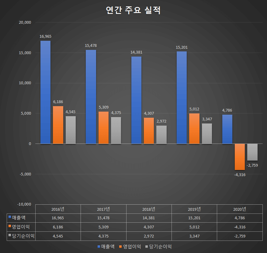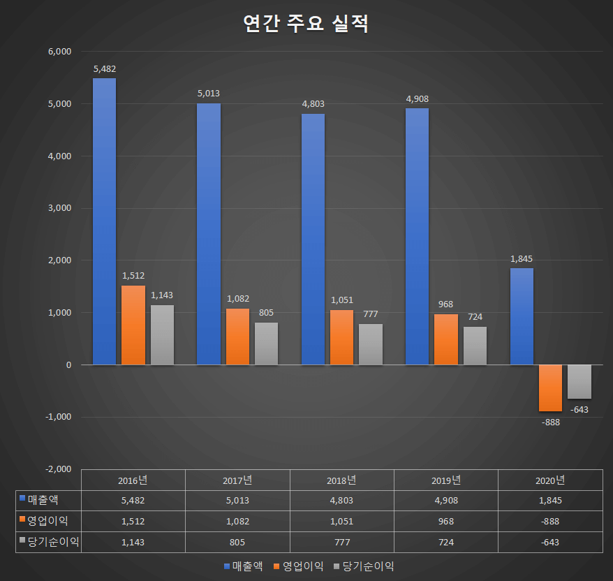 2021년도 3분기 누적 매출실적은 635억원으로, 전년동기 대비 62.5% 감소하고 있습니다. 이는 코로나19에 따른 VIP 입장객 감소 영향이며, 점진적으로 매출이 호전되고 있습니다.