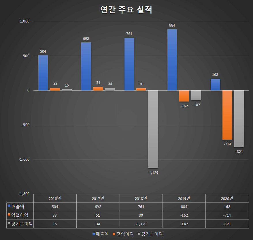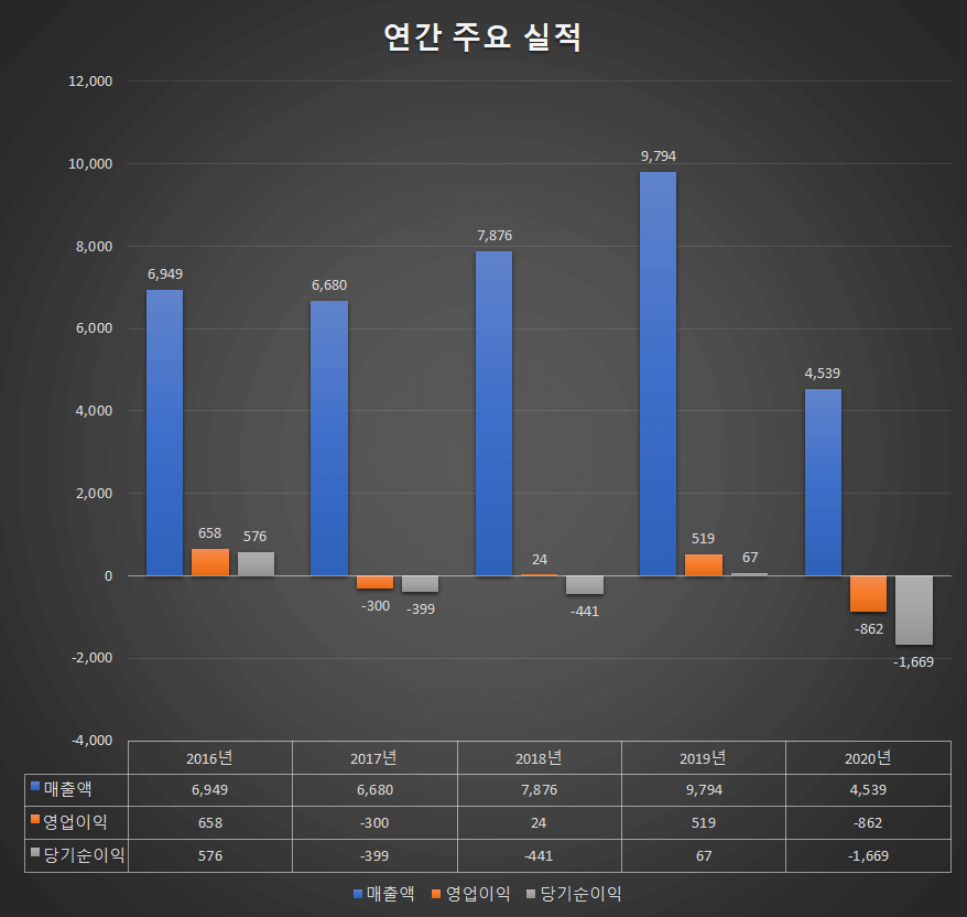 당 분기까지(2021.01.01~2021.09.30) 당사의 누계 매출액은 전년 동기대비 2.04% 증가한 1,455억 원이며, 동 기간 영업이익은 재료비, 물류비용 등 비용상승의 영향으로 전년 동기 대비 적자전환한 -108억 원을 기록했습니다.