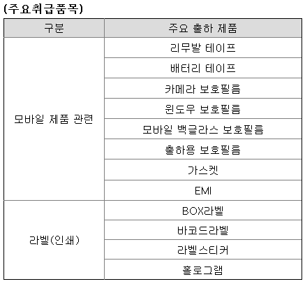 2) 모바일관련 부자재 및 인쇄물 제조업