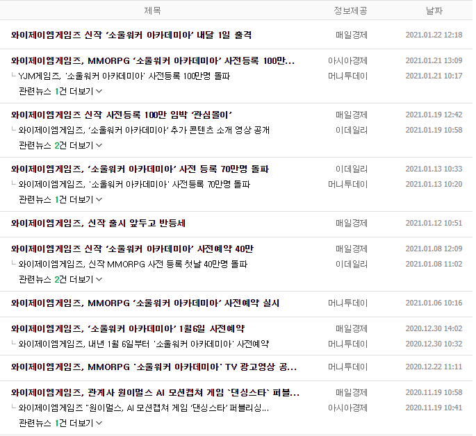 와이제이엠게임즈 MMORPG 신작게임 '소울워커 아카데이아' 사전등록 100만명 돌파로 흥행예상.