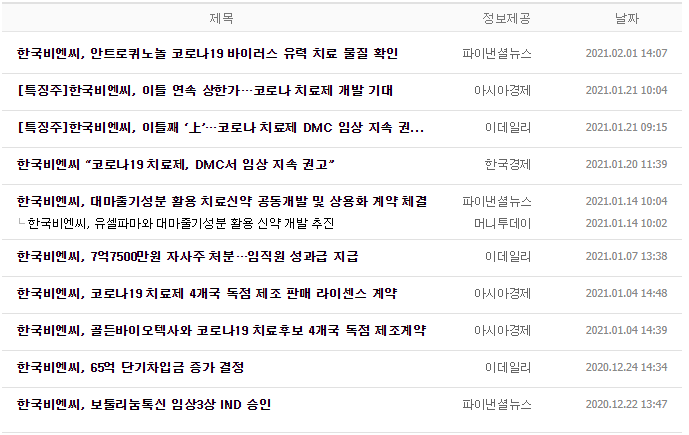 | 한국비엔씨 안트로퀴노놀 코로나19 치료제개발 한국비엔씨 코로나19치료제 DMC 임상지속 권고 |