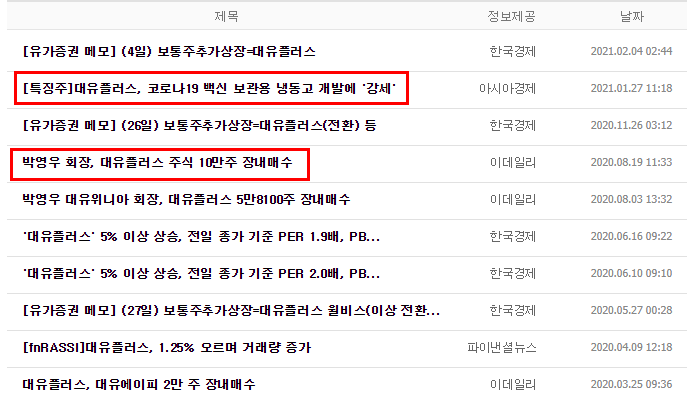 다음은 대유플러스 관련 주요뉴스 및 공시내용입니다.