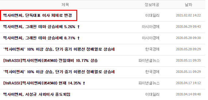 다음은 엑사이엔씨 관련 주요뉴스 및 공시내용입니다.